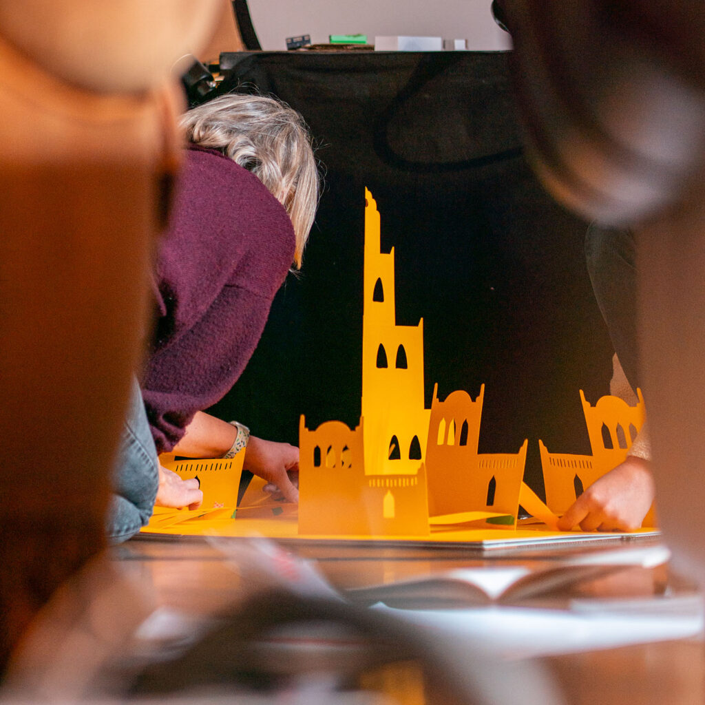 À la prochaine étape, dernière ligne droite avant la première du spectacle, le 24 janvier, Cécile pourra s’attaquer plus en détail au jeu, aux voix, à la manipulation et au placement des marionnettes, pendant que Sofijo réalisera la version finale du livre pop-up !